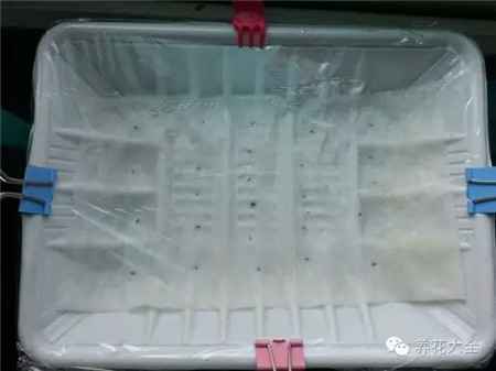 拿来催芽:餐巾纸打湿后用镊子将种子一粒一粒放到餐巾纸上,把餐巾纸放到塑料盘里,盖上一层保鲜膜,约3~7天便可催芽成功,将已发根的种子取出再种,可以提高播种存活率。